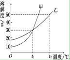 A.t1℃时,在100 g水中放入60 g甲,其溶质的质量分数为
