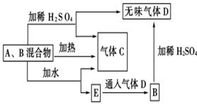 1、选择题 (12分)有A、B两种常见化合物组成混合物,其焰色反应均为黄色,其相互转化关系如图(其他物质均略去)。