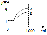5、选择题 pH=1的两种酸溶液A、B各1 mL,分别加水稀释到1000mL,其pH值与溶液体积的关系如图,下列说法正确的是