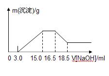 溶液与硫酸组成的混合溶液充分反应,反应过程中无任何气体放出,相反应后的溶液中逐滴加入4.00mol/L的NaOH溶液,加入的溶液体积与与产生的沉淀质量的关系如图所示。