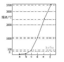 1、填空题 下图是Na、Cu、Si、H、C、N等元素单质的熔点高低的顺序,其中c、d均是热和电的良导体。