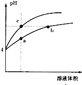 4、选择题 某温度下,体积和pH都相同的盐酸和氯化铵溶液加水稀释时的PH变化曲线如图所示,下列判断正确的是( )