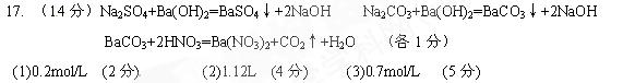 5、计算题 (8分)将标准状况下的HCl气体4.48 L溶于水形成100 mL溶液,然后与足量的铁屑充分反应。计算:(1)所得盐酸溶液的物质的量浓度。