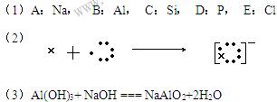 4、填空题 (9分)A、B、C、D、E为原子序数依次增大的短周期元素,已知A、B、E 3种原子最外层共有11个电子,且这3种元素的最高价氧化物的水化物两两皆能发生反应生成盐和水,C元素的最外层电子数比次外层电子数少4,D元素原子次外层电子数比最外层电子数多3。