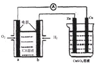 1、选择题 如图所示装置中,已知电子由b极沿导线流向锌.下列判断正确的是( ) A.该装置中Cu极为阴极 B.一段时间后锌片质量减少 C.b极反应的电极反应式为:H2-2e-+20H-=2H2O D.当铜极的质量变化为32g时,a极上消耗的O2的体积为5.6L