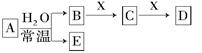 5、选择题  由短周期元素组成的常见无机物A、B、C、D、E、X存在如图转化关系(部分生成物和反应条件略去)。若