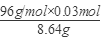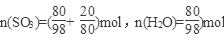 >40%。 (2)因为20%发烟硫酸为80克H2SO4含SO3 20克, , 若用SO3·nH2O表示20%的发烟硫酸,则n=0.77。 (3)配制溶液加入足量的BaCl2溶液,过滤得沉淀9.32克,n(SO42-)= =0.04mol;再通入112mL(标准状况)氯气恰好将Fe2+完全氧化(2Fe2++Cl2==2Fe3++2Cl-),n(Fe2+)=2× =0.01mol;由电荷守恒n(Fe3+)=0.02mol, 7.32克晶体含有0.01molFeSO4为1.52g、0.01mol Fe2(SO4)3为4.00g,还有H2O为1.80g即0.1mol,晶体的化学式FeSO4·Fe2(SO4)3·10H2O。 (4)假设固体混合物全部为CuS,则n(CuS)= =0.09mol,需要硝酸的物质的量为y, 8NO3-+3CuS + 8H+==3Cu2++3SO42-+8NO↑+4H2O, 3 8 0.09mol y y=0.24mol 剩余的硝酸的物质的量为:0.4mol-0.24mol=0.16mol。 0.112mol硝酸和(NH4)2Fe(SO4)2溶液完全反应。 NO3-+3Fe2++4H+==NO↑+3Fe3++2H2O 3mol 4 1×10-3VL×2mol/L 0.16mol,解得V=60, 所以V值范围为:42<V<60, ②若V=48,与48mL(NH4)2Fe(SO4)2溶液完全反应需要硝酸的物质的量为: NO3-+3Fe2+ + 4H+→NO↑+3Fe3++2H2O 3mol 4 0.048L×2mol/L n 解得:n=0.128mol, 故与固体混合物反应的硝酸的物质的量为:0.4mol-0.128mol=0.272mol, 设Cu2S的物质的量xmol,CuS的物质的量为ymol,160x+96y=8.64g①. 10NO3-+3Cu2S+16H+→6Cu2++10NO↑+3SO42-+8H2O 3 16 x 16x/3 8NO3-+3CuS+8H+→3Cu2++3SO42-+8NO↑+4H2O, 3 8 y 8y/3 16x/3+8y/3=0.272② 由①②解得:x=0.036; y=0.03 混合物中CuS的质量分数为: ×100%≈33.33%。