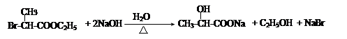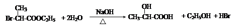 本题解析:(1)观察结构简式,发现化合物I由CH3O—、—C6H4—、—CHO构成,则其分子式为C8H8O2;CH3CHOHCOOH的分子式为C3H6O3,比C3H4O2多2个H、1个O,再由浓硫酸、加热的反应条件推断,前者发生消去反应,则化合物III的结构简式为CH2=CHCOOH;(2)化合物II的官能团为溴原子、酯基,二者都能在热NaOH溶液中发生水解反应,则CH3CHBrCOOC2H5+2NaOH→CH3CHOHCOONa+C2H5OH+NaBr;(3)CH3CHOHCOOH的分子式为,2个C3H6O3比1个C6H8O4多4个H、2个O,说明2个CH3CHOHCOOH在浓硫酸加热时发生酯化反应,生成1个分子式为C6H8O4的环状酯和2个H2O;(4)依题意推断,化合物I的同分异构体为甲酸苯甲酯,既含有醛基又含有酯基,化合物IV结构简式为HCOOCH2C6H5。