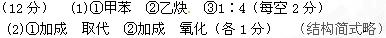 2、填空题 (12分)(1)乙烯、乙炔、甲苯、苯乙烯(