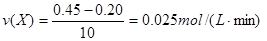 A.用X表示0~10 min内该反应的平均速率为v(x)=0.045mol/(L·min)