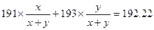 解法3:观察排除法:平均原子量大于191与193的中间值192,可以判断出质量数大的原子含量高,故191Ir : 193Ir<1:1,只有选项A符合。