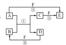 5、填空题 A、B、C、D、E、F六种物质的相互转化关系如右图所示(反应条件及部分产物未列出)。