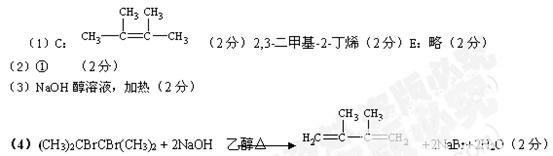 C ?+ Br2?——③→ D ?———→ ?E ?—