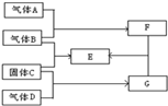 4、填空题 已知单质A、B、C、D有如下的反应关系.其中A?在B中燃烧时,火焰呈苍白色;?C在B中燃烧时生成棕黄色的烟,E的水溶液呈蓝绿色,G是一种黑色固体.
