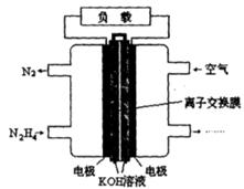 (2)根据题意可知:在该肼(N2H4)为燃料的电池中,通入肼(N2H4)的电极为负极,通入空气的电极正极。负极的电极反应式为:N2H4+4OH--4e-="==" N2+4H2O,电池工作时电子由负极经过负载到正极,产生的电流则从右侧的电极经过负载后流向左侧的负极。2H4)的性质及在燃料的电池应用的知识。