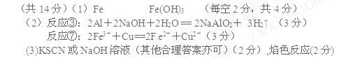 (5)在C溶液中加入与C等物质的量的Na2O2,恰好使C转化为F,写出该反应的离子方程式:____________________________.
