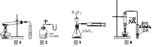 本题解析:图1装置中液体没有明确,应为澄清石灰水,可根据澄清石灰水是否变浑浊检验NaHCO3的热稳定性,故A错误;图2铁发生吸氧腐蚀,导致U形管液面不同,故B正确;图3中定量测定H2O2的分解速率 ,应用分液漏斗,防止气体逸散,故C错误;图4中乙醇易挥发,能使酸性高锰酸钾溶液褪色,不能检验是否生成乙烯,故D不正确,答案选B。
