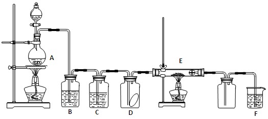 1、实验题 (10分)下图为实验室制取纯净、干燥的Cl2,并进行检验Cl2性质实验的装置。其中D瓶中放有干燥红色布条;E中为铜网,E右端出气管口附近为石棉球。