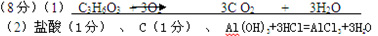 3、填空题 (8分)(1)剧烈运动后血液中产生了较多乳酸(C3H6O3),使人肌肉酸痛,经过一段时间放松,由于乳酸与吸入的氧气反应,生成二氧化碳和水,酸痛感消失。此反应的化学方程式为: 。