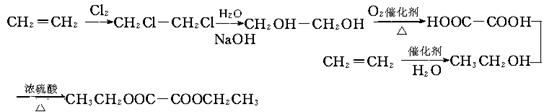 ⑷试以乙烯为原料通过反应合成医药和染料工业产品中常用的中间体——草酸二乙(C2H5OOCCOOC2H5)(用反应流程图表示,并注明反应条件)。