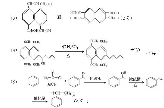 (3)A中含有萘环结构,M与A互为同分异构体,且符合下列条件:(a)M也含有萘环结构,且环上的一氯取代物只有一种;(b)1 mol M能与足量的金属钠反应生成2 mol H2;(c)M不能与Na2CO3溶液反应。