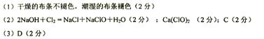 3、填空题 (10分)(1)如图所示,将CL2依次通过盛有干燥有色布条的广□瓶和盛有潮湿有色布条的广口瓶,可观察到灼现象是?。