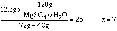 2、计算题 (10分)将过量Mg粉溶于100mL 1.5mol·L-1稀H2SO4中,反应结束后,滤去多余Mg粉,滤液在t℃下蒸发,当滤液质量为72.0g时开始析出MgSO4·xH2O晶体,当析出晶体12.3g时,剩下滤液48