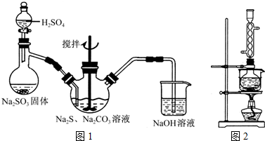 (1)用图1所示装置制取Na2S2O3,其中NaOH溶液的作用是______.如将分液漏斗中的H2SO4改成浓盐酸,则三颈烧瓶内除Na2S2O3生成外,还有______(填化学式)杂质生成. (2)为测定所得保险粉样品中Na2S2O3?5H2O的质量分数,可用标准碘溶液进行滴定,反应方程式为2Na2S2O3+I2═2NaI+Na2S4O6. ①利用KIO3、KI和HCl可配制标准碘溶液.写出配制时所发生反应的离子方程式:______. ②准确称取一定质量的Na2S2O3?5H2O样品于锥形瓶中,加水溶解,并滴加______作指示剂,用所配制的标准碘溶液滴定.滴定时所用的玻璃仪器除锥形瓶外,还有______. ③若滴定时振荡不充分,刚看到溶液局部变色就停止滴定,则会使样品中Na2S2O3?5H2O的质量分数的测量结果______(填“偏高”“偏低”或“不变”). (3)本实验对Na2S的纯度要求较高,利用图2所示的装置可将工业级的Na2S提纯.已知Na2S常温下微溶于酒精,加热时溶解度迅速增大,杂质不溶于酒精.提纯步骤依次为: ①将已称量好的工业Na2S放入圆底烧瓶中,并加入一定质量的酒精和少量水; ②按图2所示装配所需仪器,向冷凝管中通入冷却水,水浴加热; ③待______时,停止加热,将烧瓶取下; ④______; ⑤______; ⑥将所得固体洗涤、干燥,得到Na2S?9H2O晶体.