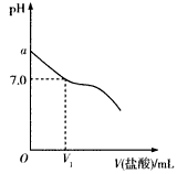 (2)如图,当加入稀盐酸的体积为V1mL时,溶液的pH刚好为7.0。此时溶液中c(Cl-)___c(CH3COOH)(填 “<”、“>”或“=”)。简要写出判断依据:_____________________。