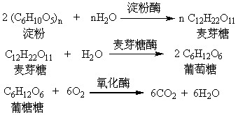 本题解析:(1)淀粉在人体内,首先在淀粉酶的作用下,生成麦芽糖,然后麦芽糖继续水解生成葡萄糖。葡萄糖在人体内氧化生成CO2和水,同时放出大量的能量,供人体利用。