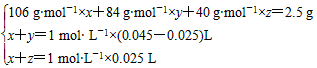 解得:x=0.01 mol,y=0.01 mol,z=0.015 mol