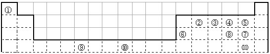 (4)⑦、⑧两种元素能形成一种AB2型的共价分子,该分子属于?分子(填“极性”或“非极性”)⑤、⑦、⑾三种元素之间能以原子个数比1∶1两两形成互化物,这些互化物的性质类似于这些元素的单质。请写出⑦、⑾两种元素形成的互化物的化学式?(正价元素写在前面)。