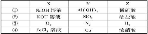2、选择题 常温下,下列各组物质中,Y既能与X反应又能与Z反应的是