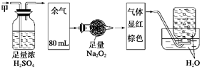 100 mL甲气体经过足量浓硫酸后变为80mL,故甲气体可一定含有NH3,而经过足量Na2O2后气体显红棕色,故一定含有NO,CO2,故B正确。