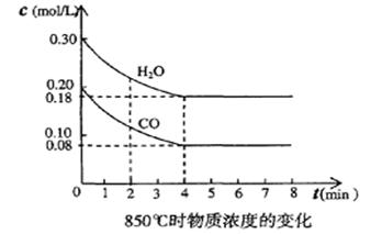 (3)在一体积为10L的容器中,通人一定量的CO和H2O,在850℃时发生反应,CO和H2O浓度变化如下图。则 0—4min的平均反应速率v(CO)=___________ mol/(L·min),850℃的化学平衡