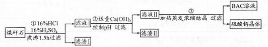 5、填空题 工业上用粉碎的煤矸石(主要含Al2O3、SiO2及铁的氧化物)制备净水剂BAC〔Al2(OH)nCl6-n〕的流程如下: