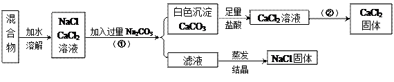 2、实验题 (14分)利用过滤的方法可以初步除去粗盐中的泥沙等不溶性的杂质,但仍含有CaCl2,CaCl2是一种易溶于水的物质,无法用过滤的方式将其和NaCl分离,经过分析讨论,某小组同学在此基础上继续设计了如下实验: