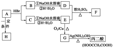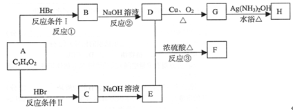 3、选择题 已知A的分子式为C3H4O2,下图是A~H间相互转化的关系图,其中F中含有一个七元环;H是一种高分子化合物。(提示:羟基与双键碳原子相连的醇不稳定;同一个碳原子上连有2个或多个羟基的多元醇不稳定)。请回答下列问题: