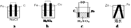 4、选择题 铁在下列四种情况中腐蚀速率判断正确的是A.a>b>c>dB.b>a>d>cC.d>c>b>aD.b>d>a>c
