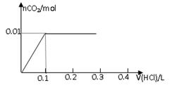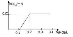 参考答案:D 本题解析:略 本题难度:一般 5、选择题 将0.8g NaOH和1.06g Na2CO3混合并配成溶液,向溶液中滴加0.1 mol·L-1稀盐酸。下列图像能正确表示加入盐酸的体积和生成CO2的物质的量的关系的是? 参考答案:D 本题解析:对NaOH和Na2CO3混合配成的溶液,当滴加盐酸时,先发生氢氧化钠与盐酸的中和反应,再发生碳酸钠与盐酸的反应生成碳酸氢钠和氯化钠,最后发生碳酸氢钠与盐酸反应才有二氧化碳气体生成,有关反应的方程式分别是NaOH+HCl=NaCl+H2O、HCl+Na2CO3=NaHCO3+NaCl、NaHCO3+HCl=NaCl+H2O+CO2↑。0.8g NaOH和1.06g Na2CO3物质的量分别是0.8g÷40g/mol=0.02mol、1.06g÷106/mol=0.01mol,三步反应中消耗氯化氢的物质的量分别是0.02mol、0.01mol和0.01mol,对应盐酸的体积是0.2L、0.1L、0.1L,即盐酸的体积滴加到0.3L时开始出现气体,滴加到0.4L时气体达到最大值,因此选项D符合,答案选D。 本题难度:一般 |