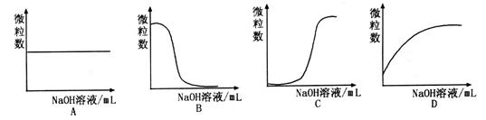 2、填空题 已知HA是一种弱酸。请回答下列问题:(1)现有一种含有HA和其钠盐NaA的溶液。①组成该溶液的微观粒子有 ;②若向该溶液中加入少量盐酸时,发生反应的离子方程式是 ;③若向该溶液中逐滴加入NaOH溶液时,下列图像能表示离子数目变化趋势的是 (填字母)。(2)现将1体积0.04mol溶液和1体积0.02molNaOH溶液混合,得到2体积混合溶液。①若该混合液显碱性,则其 0.01 mol(填“<”、“=”或“>”);②若该混合液显酸性,则溶液中所有离子的浓度由大到小的顺序是 。