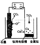 3、选择题 研究发现,可以用石墨作阳极、钛网作阴极、熔融CaF2—CaO作电解质,利用图示装置获得金属钙,并以钙为还原剂还原二氧化铁制备金属钛。下列说法中正确的是