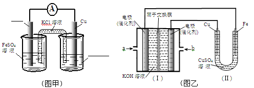 ②图乙中,I是甲烷燃料电池的示意图,该同学想在II中实现铁上镀铜,则应在a处通入 (填“CH4”或“O2”),b处电极上发生的电极反应式为 ==4OH-;