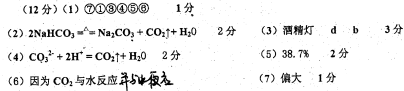 5、实验题 (12分)某研究性学习小组为测定,13.7g某Na2CO3样品的纯度(其中只含NaHCO3杂质),选用下图所示的仪器装置进行实验(②装置未画全)。试回答有关问题:
