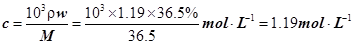 答:该盐酸的物质的量浓度为11.9mol/L.