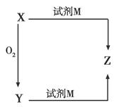 3、选择题 物质X、Y、Z均含有同一种元素,其转化关系如图所示。下列物质X和试剂M的组合不可能是(?)