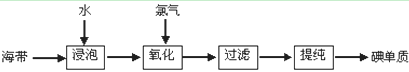 3、实验题 【材料一】苏教版《化学1(必修)》工业上从海产品(海带)中获取碘的流程图如下:
