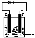 (3)?电解原理在化学工业中有着广泛的应用。现将你设计的原电池通过导线与右图中电解池相连,其中a为电解液, X和Y均为惰性电极,则: