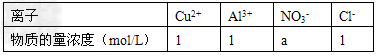 1、选择题  1L某溶液中含有的离子如下表