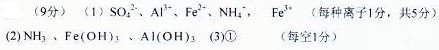 ⑴SO42―? Al3+? Fe2+? NH4+? ,? Fe3+?⑵NH3? Fe (OH)3? Al (OH)3?⑶①